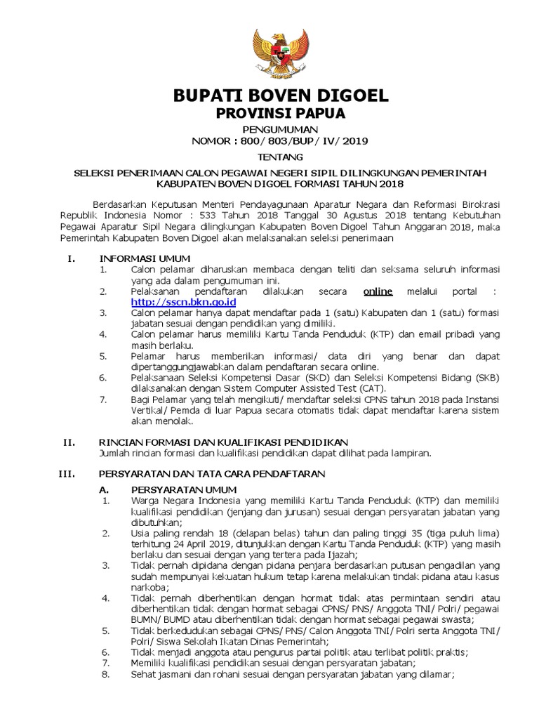 Pengumuman Seleksi Administrasi Cpns 2018 Kabupaten Boven Digoel Tirto Id