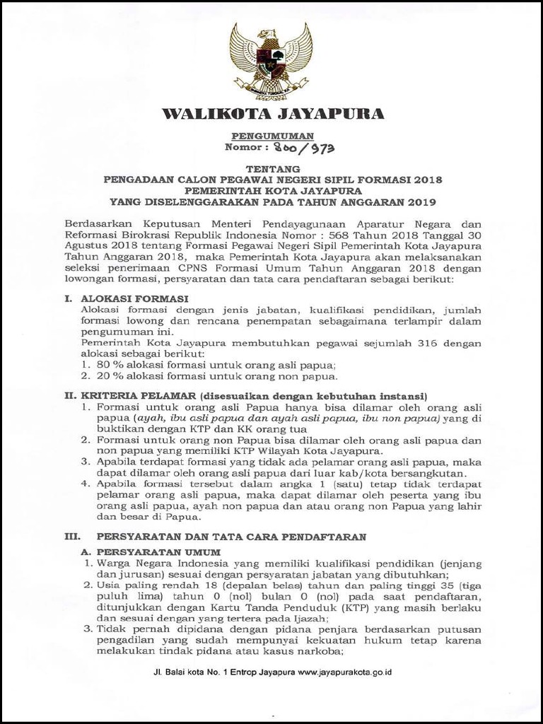 Pengumuman Seleksi Administrasi Cpns 2018 Kota Jayapura Tirto Id