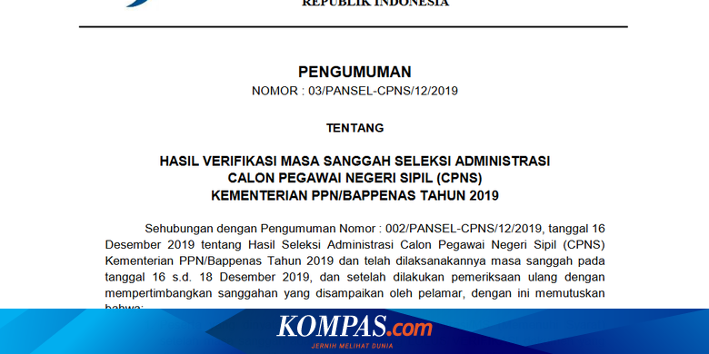 Hasil Sanggah Cpns 2019 Di Kementerian Ppn Bappenas Diumumkan 9 202 Peserta Lolos Halaman All Kompas Com