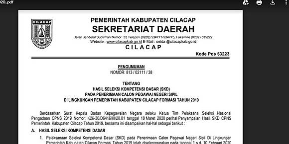 Pengumuman Hasil Skb Cpns Kab Cilacap 2019 2020