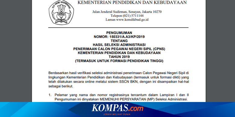 39 594 Pelamar Lolos Seleksi Administrasi Cpns 2019 Di Kemendikbud Ini Informasinya Halaman All Kompas Com