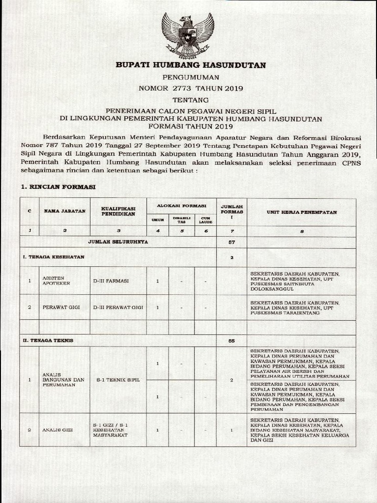 Pengumuman Seleksi Administrasi Cpns 2018 Kabupaten Humbang Hasundutan Tirto Id