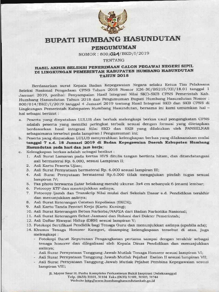 Hasil Akhir Cpns Humbang Hasundutan 2018 Dan Pemberkasan