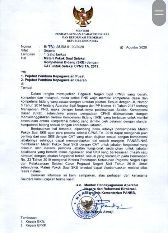Jadwal Tes Ujian Skd Skb Cpns Kab Kotabaru 2020