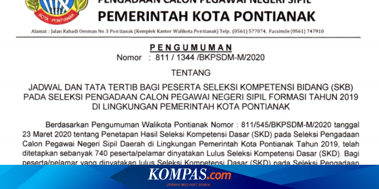 Jadwal Pelaksanaan Skb Cpns 2019 Di Kota Pontianak Halaman All Kompas Com