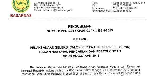 Pengumuman Hasil Seleksi Administrasi Cpns Basarnas 2019