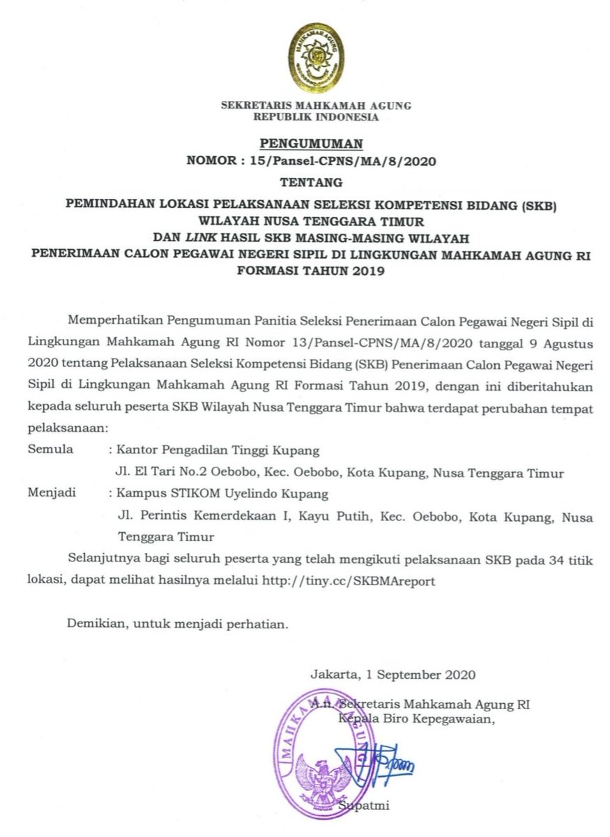 Rekrutmen Cpns Mahkamah Agung Ri On Twitter Sesuai Pengumuman Pansel Cpns Ma Jadwal Skd Akan Diumumkan Setelah Adanya Persetujuan Dari Panitia Seleksi Nasional