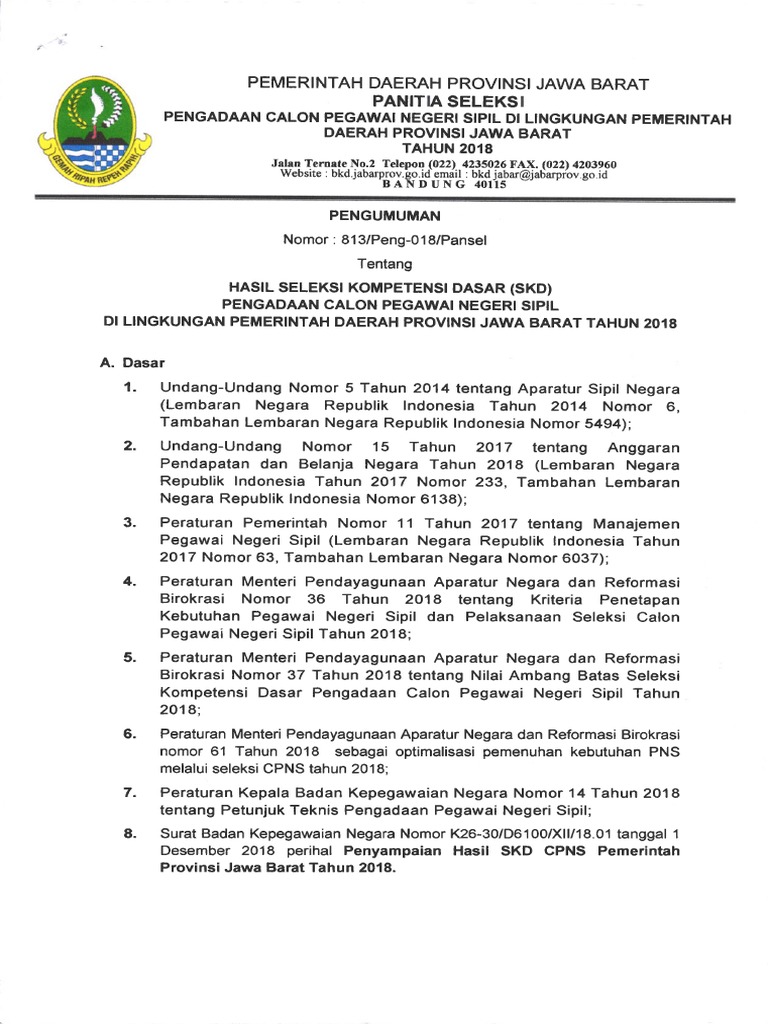 Pengumuman Hasil Skd Pemprov Jabar 2018
