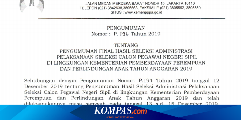 Dalam pengumuman hasil ujian tes skd cpns kemenkumham 2019. Surat pengumuman seleksi cpns 2019. Berdasarkan pengumuman tersebut peserta yang dinyatakan lolos seleksi administrasi dan terdapat dalam lampiran dapat mengikuti seleksi kompetensi dasar skd menggunakan computer assisted test cat sesuai dengan hari tanggal dan waktu pelaksanaan yang telah ditentukan.