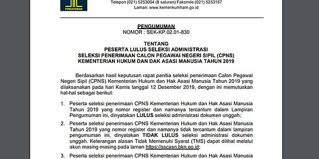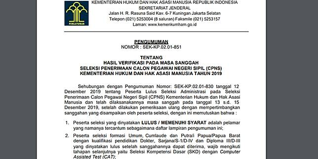 Hasil Seleksi Administrasi Cpns 2018 Kemenkumham Lulus Verifikasi Dokumen Sscn Tipssehatcantik Com