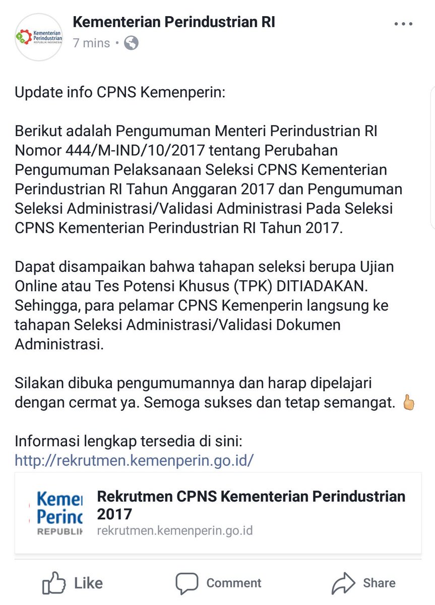 Pengumuman Hasil Seleksi Administrasi Cpns Kemenperin 2018 Verifikasi Berkas Asli Tipssehatcantik Com